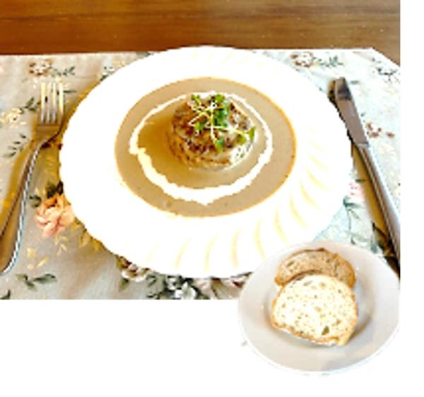 ポルチーニ入りポテトグラタン&バゲット2p スープ付き