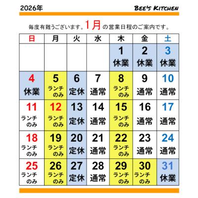 火曜日、土曜日、日曜日、祝日、他カレンダー参照