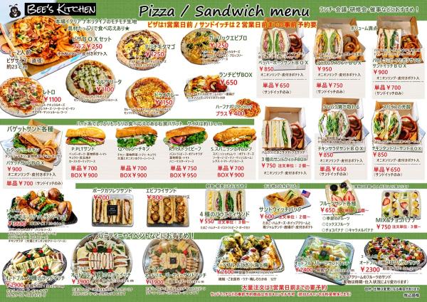 ピザは1営業日前 / サンドイッチは2営業日前までの事前予約要