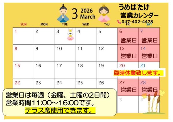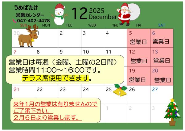 ご来店前にお電話でご確認ください。