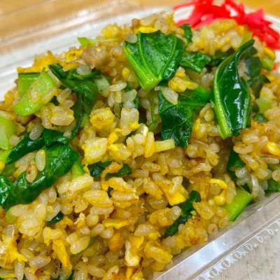 豚バラチャーシューたっぷりの青菜炒飯です☺