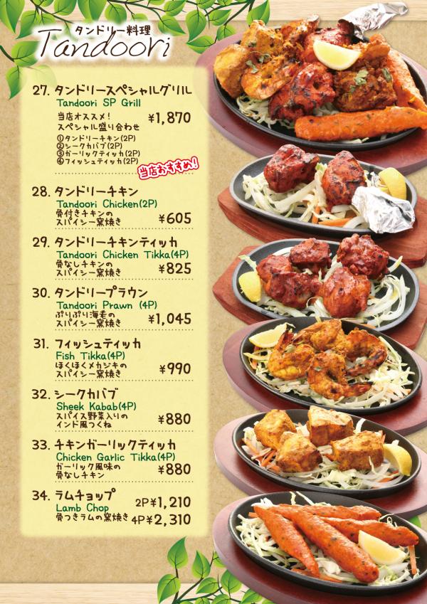 タンドリースペシャルグリル 1,980円 タンドール窯で窯焼きしたチキンやフィッシュのミックスグリル! タンドリーチキン2P シークカバブ2P ガーリックティッカ2P フィッシュティッカ2P ※メニューは全て税込価格です