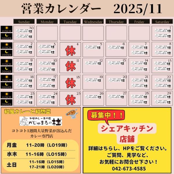 【 11月営業カレンダー 】
