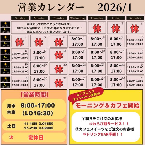 【 1月営業カレンダー 】
