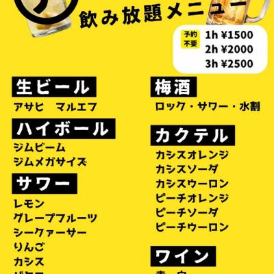 飲み放題アルコールメニュー表