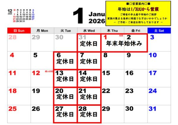 ご予約頂ければ待たずにお弁当や鰻の長焼きをご購入して頂けます。お気軽にお問い合わせください。