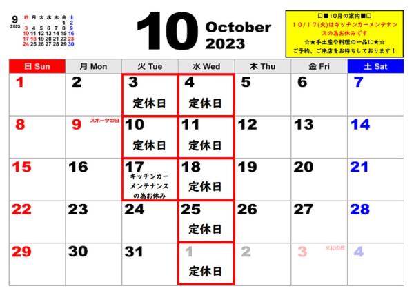 9,10月カレンダー