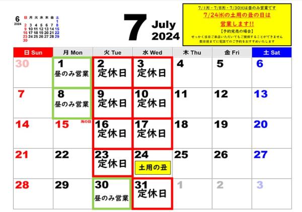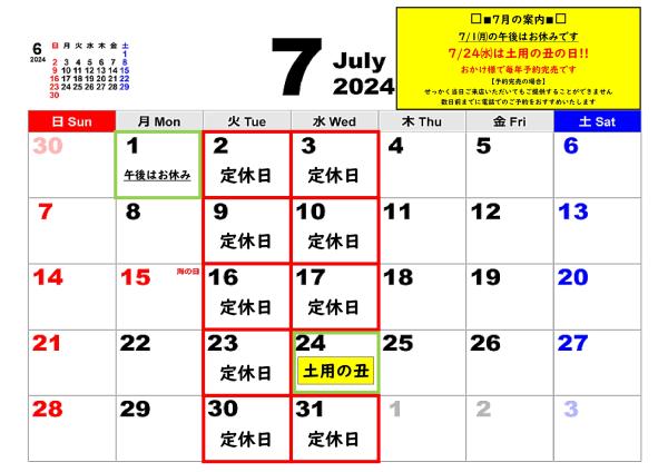 7月カレンダー