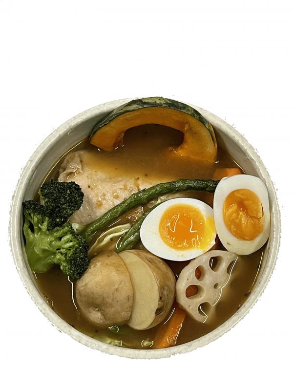 基本やさいに、チキン、ジャガイモ、ブロッコリー、ゆで卵が入った豪華版