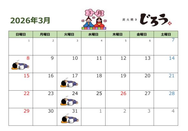 店内改装工事に伴い休業しておりました炭火焼き じろうは、2024年3月6日より営業を再開いたしました。