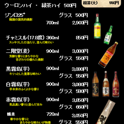 ビール・焼酎・ウイスキー・マッコルリ・サワー