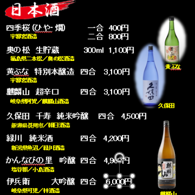 日本酒・果実酒・ワイン・ノンアルソーダ・ソフトドリンク