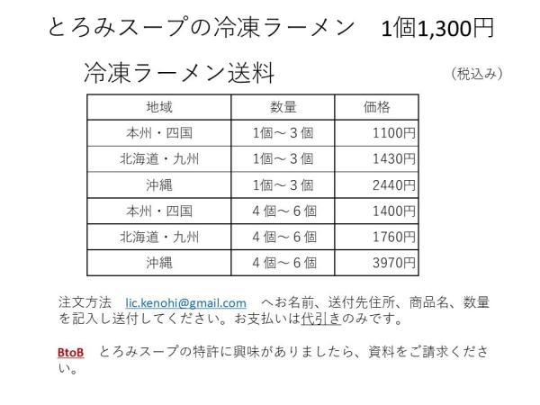 冷凍ラーメン価格・送料表