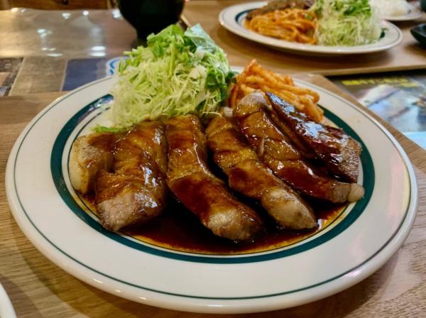 厚切りトンテキ 1300円(税込) 200gの肩ロースを低温調理してから焼き上げているので、外はパリッと中はやわらかジューシー!!バターでソテーした甘めの自家製濃厚ソースをからめてお召し上がりください。 ※メニューは全て税込価格です
