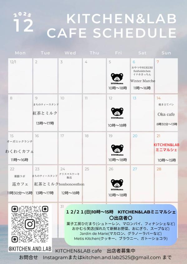 KITCHEN&LABカフェスペース 12月のスケジュールです。