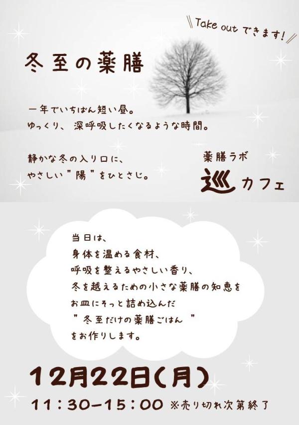 身体を温める食材、呼吸を整える優しい香り、冬を越えるための小さな薬膳の知恵をお皿にそっと詰めこんだ冬至だけの薬膳ごはん