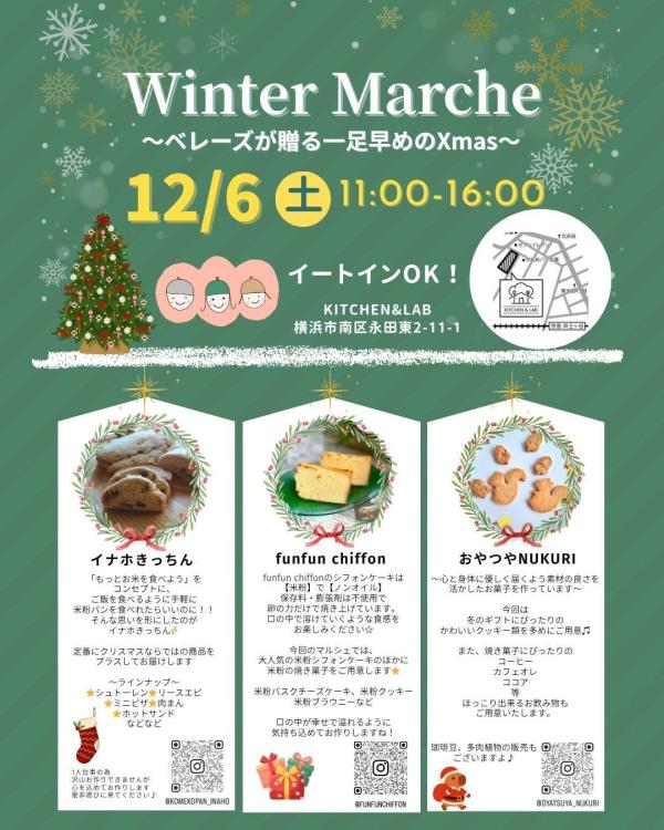 ひと足早いクリスマスをテーマに、心も体も喜ぶこだわりフードが勢ぞろい。香り豊かな米粉パン、ふんわり軽い米粉シフォン、体に優しいお菓子など、この季節にぴったりのラインナップをご用意しています。