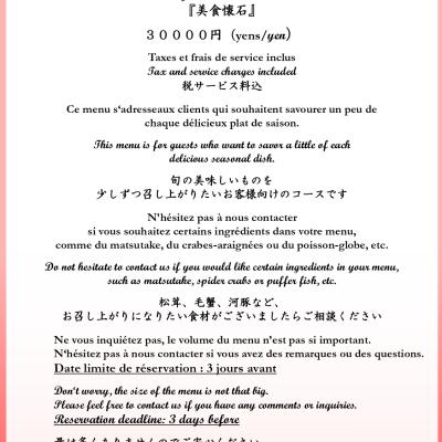 Menu Kannazuki Kaiseki
