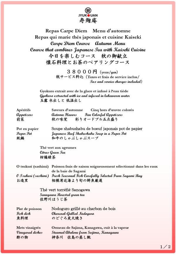 Menu d'automne Repas qui marie thés japonais et cuisine Kaiseki