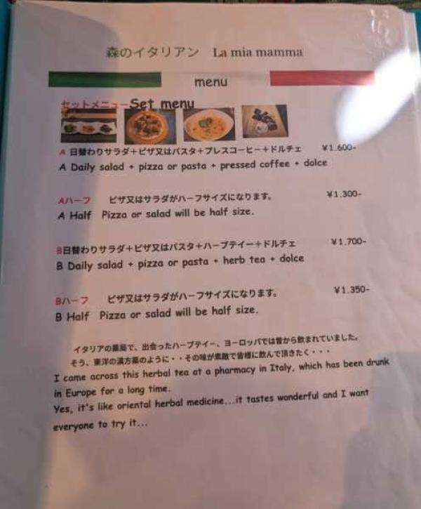 ピザ又はパスタがハーフサイズになります。 ¥1,300