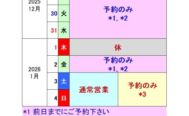 年末年始の営業について