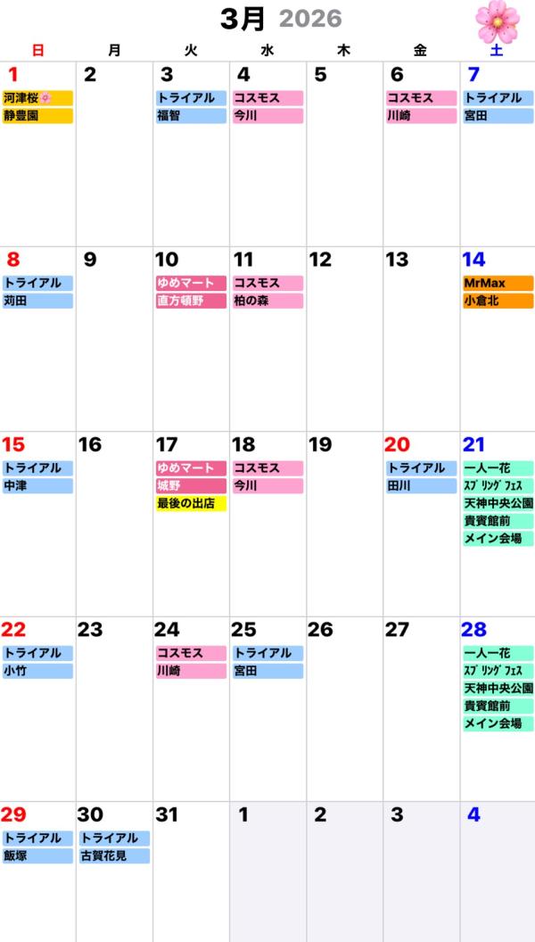 マルショクさんやドラッグストアコスモスさん、マックスバリュさんが主な営業場所です。