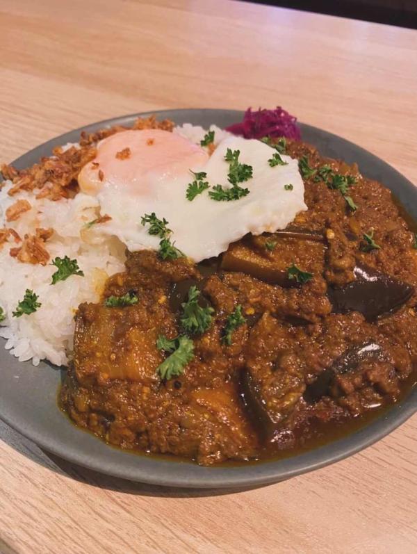 スパイスたっぷりの焼きナスと合い挽き肉のカレー。