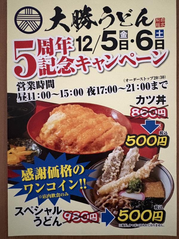 定番うどん、丼物メニュー以外にも、お得なランチメニュー有ります!