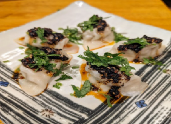 麻辣水餃子(パクチーあり)と(パクチーなし)選べます