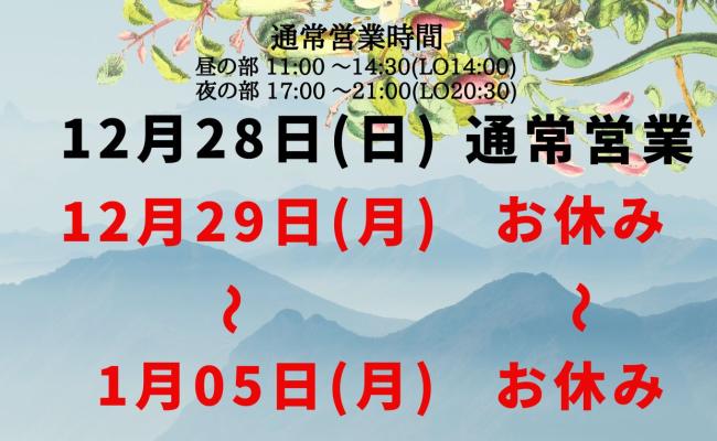 年末年始の営業について