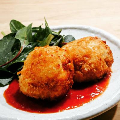 ぷりぷりの海老がごろごろ詰まった嬉しいコロッケ。