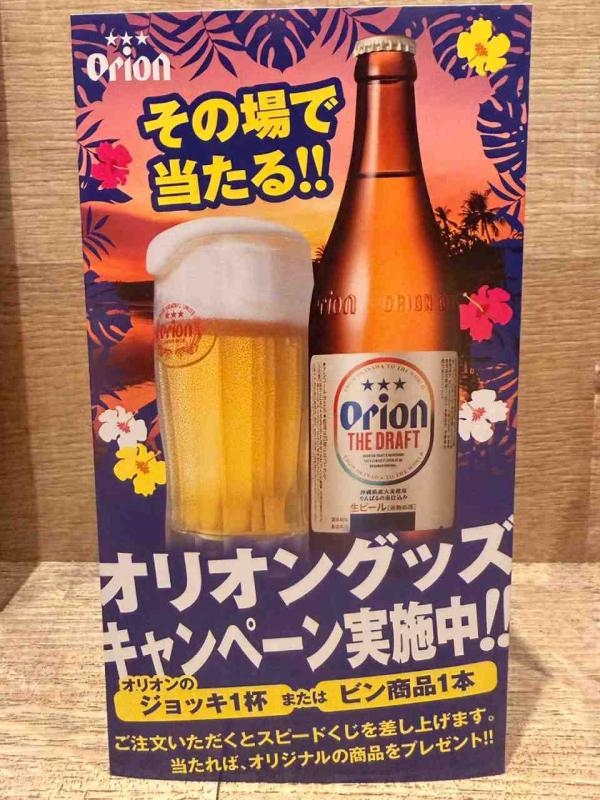 「その場で当たる‼️」オリオンビールを飲んでオリオングッズキャンペーン実施中です。